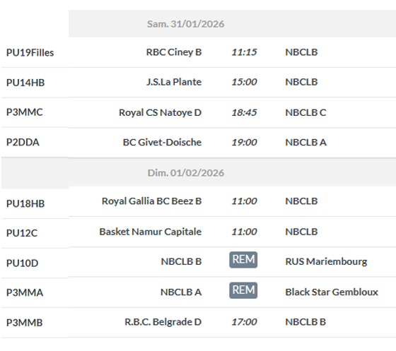 La liste des matches du week-end se trouve ci-dessous.